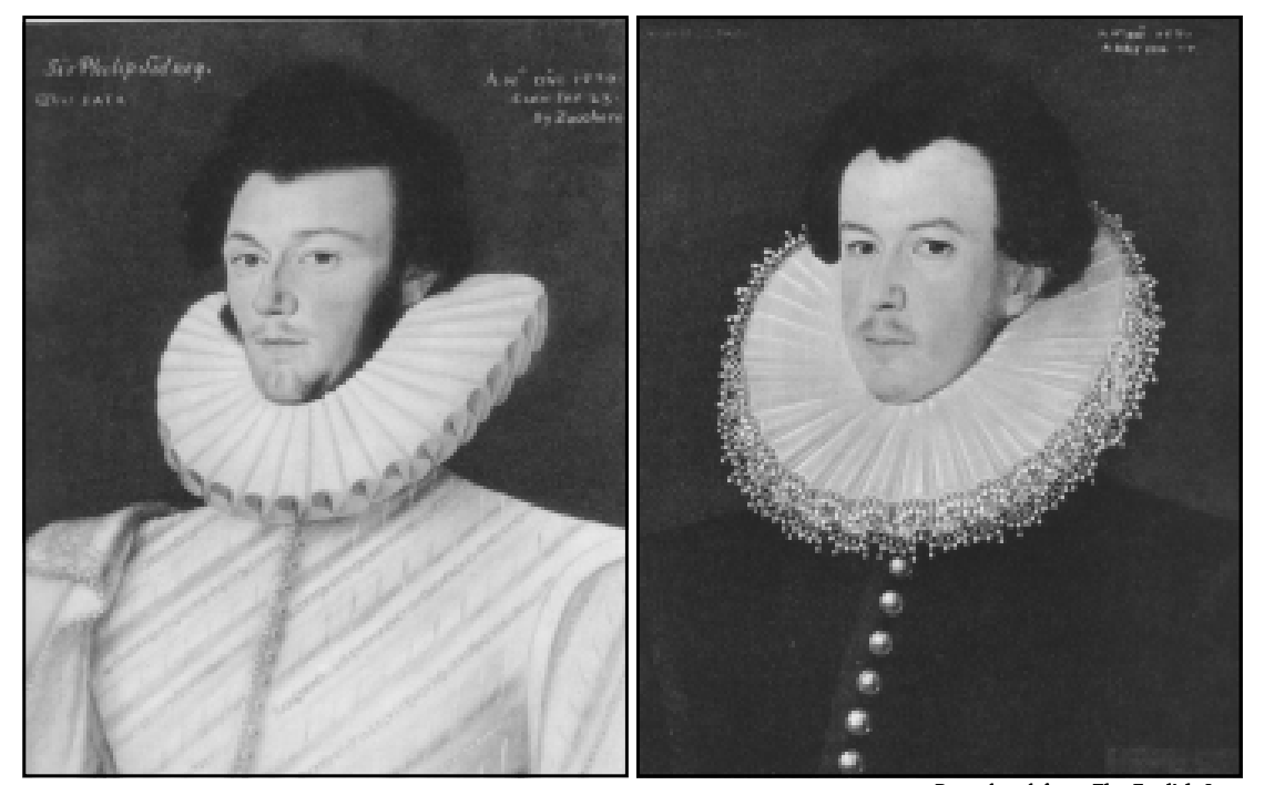 --Cobbe portrait of Shakespeare is “whisk-style rebato” supported collar. Known in Spain as golilla. Became fashion choice at turn of century with a pristine semicircle of lawn framing the head behind and often trimmed/highlighted by rich edging of cutwork or Vandyked lace. P. 5 (Downing, FTWS)